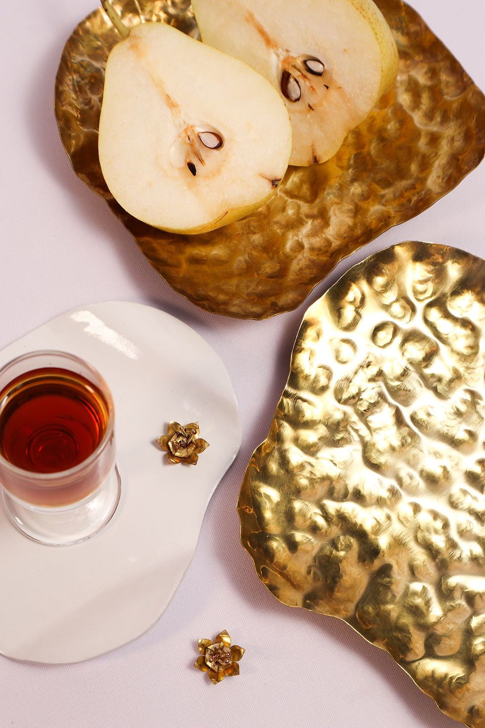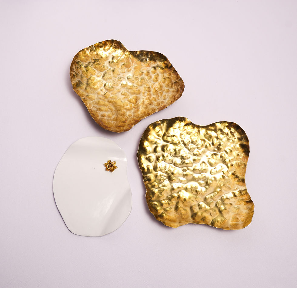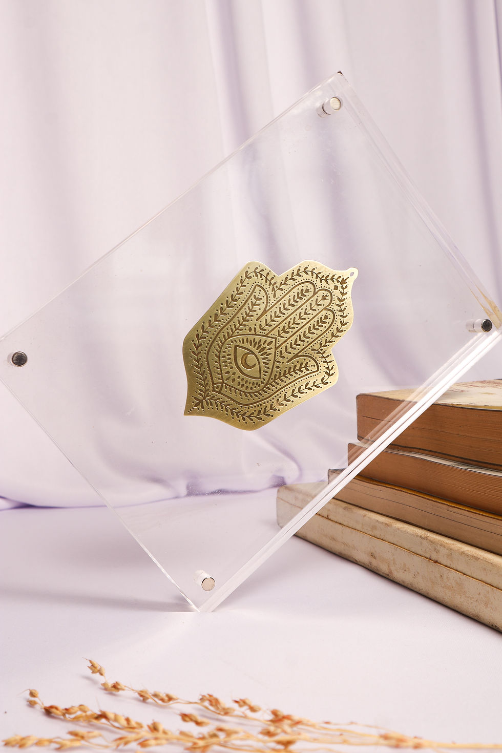 Feitas em metal dourado com banho, moldura branca ou madeira.